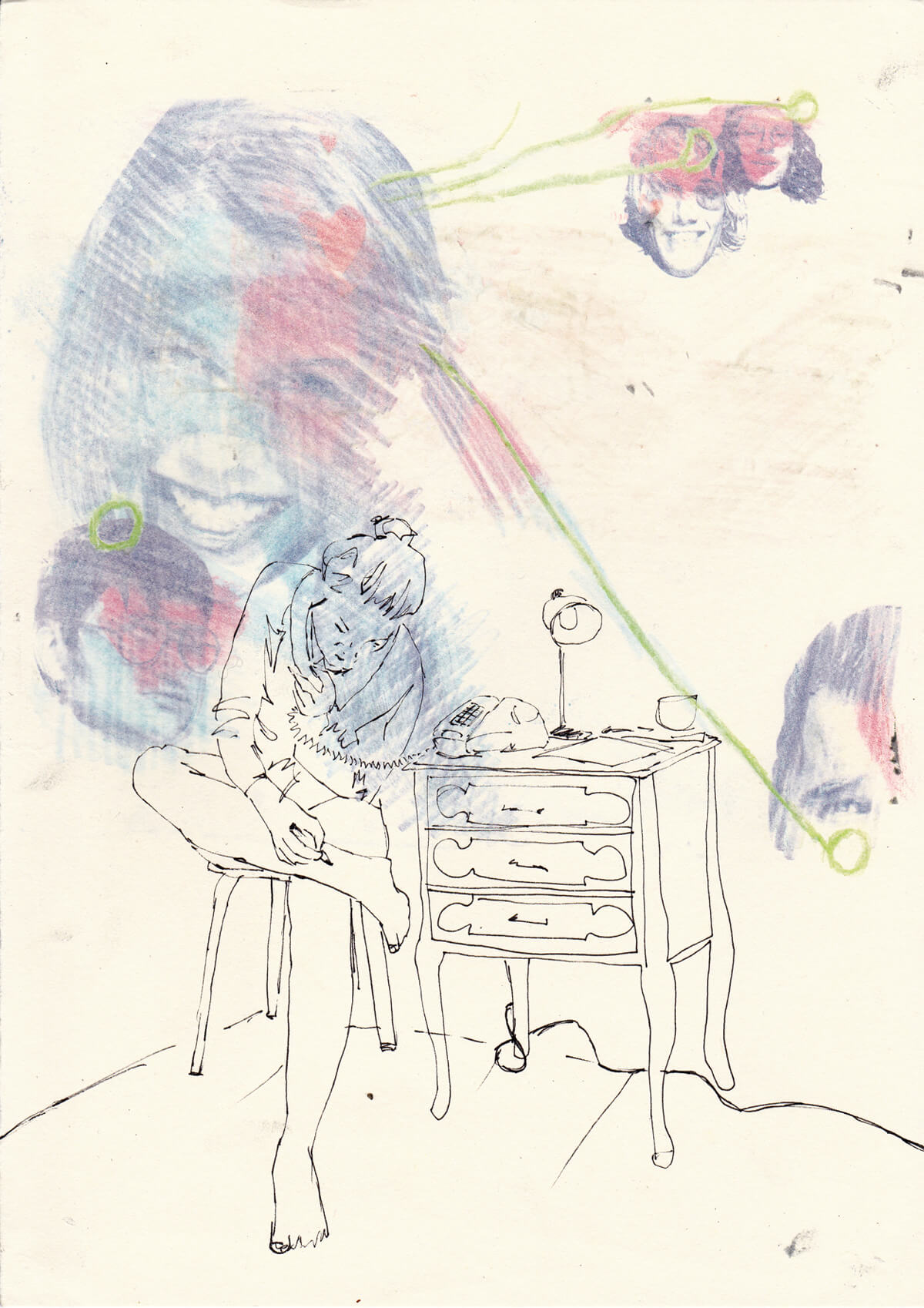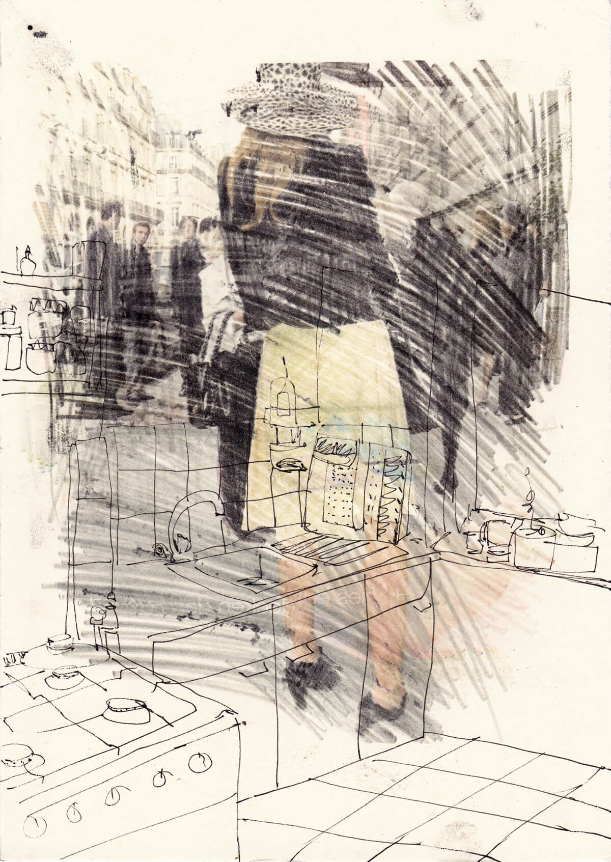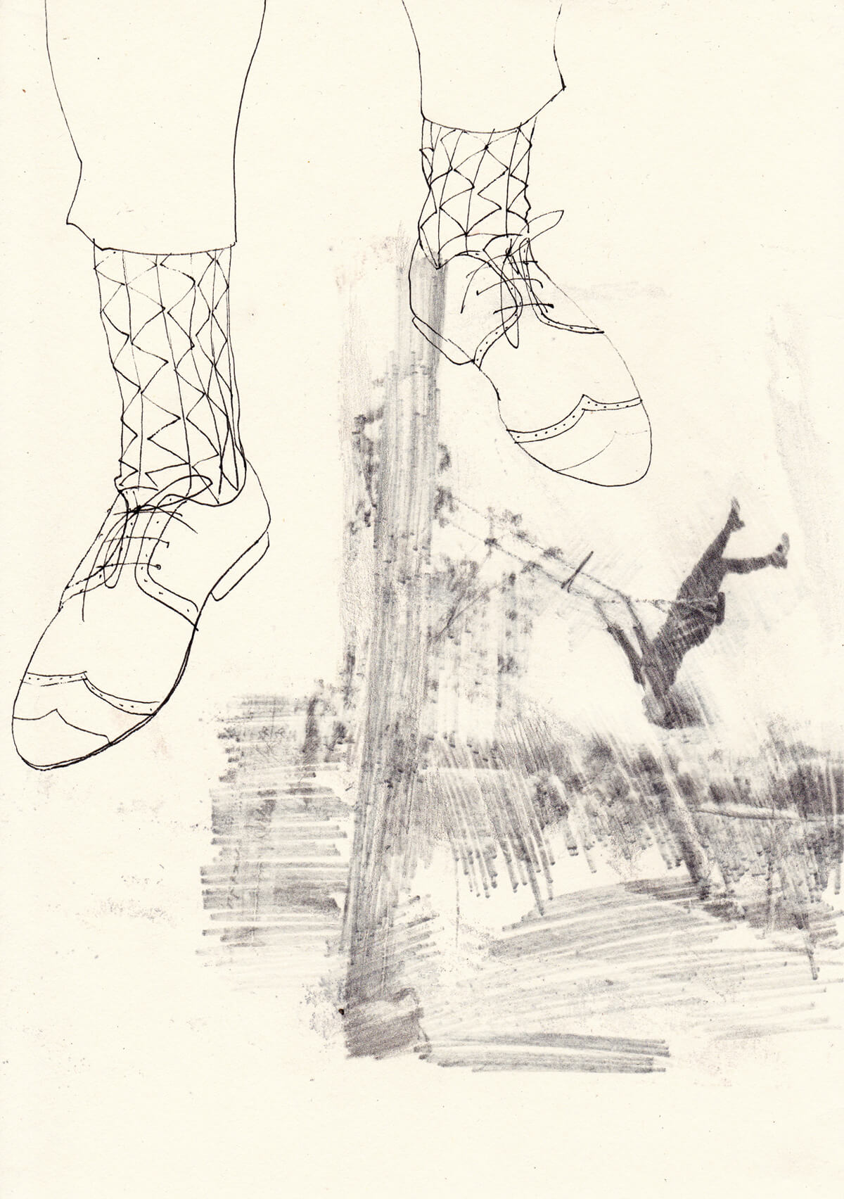 30 x 21 cm, Frottage und Tusche auf Papier, 2008